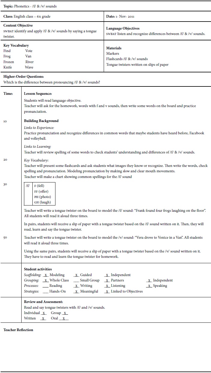Sample Lesson Plan Science